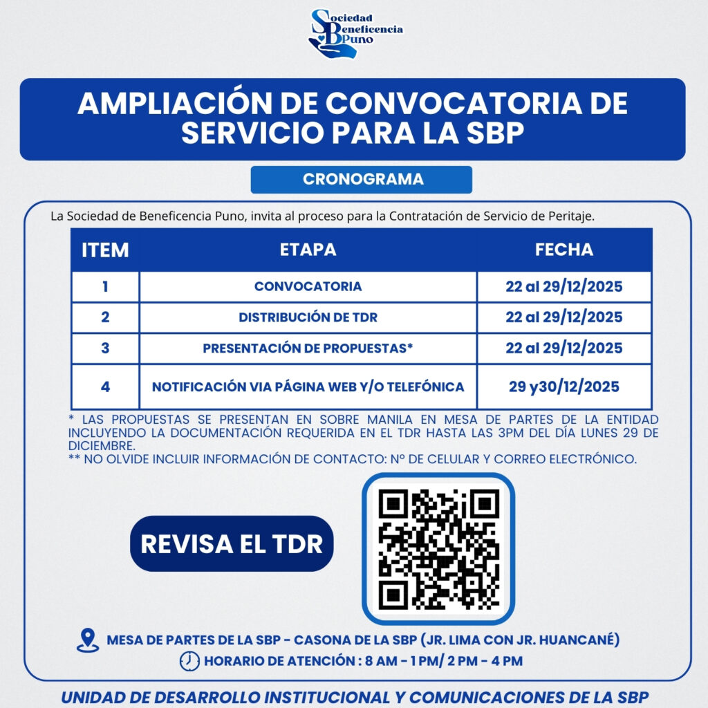 🗓Presentación de Propuestas: 29/12/2025 hasta las 3:00 pm (Mesa de Partes de la Institución)